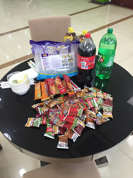 为自助餐精心准备的各种水果、披萨、鲜肉月饼、水饺、各种小零食等。
